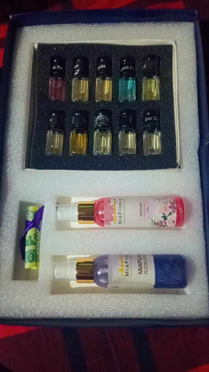 আমাদের পারফিউম বক্সে প্রতিটি ৩মিলি করে মোট ১০টি পারফিউম থাকবে মোট ৩০ মিলি। সাথে ৫০ মিলি. করে ২টি রুম স্প্রে ফ্রি থাকবে।